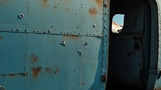 The door finally gave way, releasing a stale, rust-scented gust of air. “Here we go,” Rick said, stepping into the cramped cockpit. Corrosion covered every surface, yet the vintage controls and dials were intact.