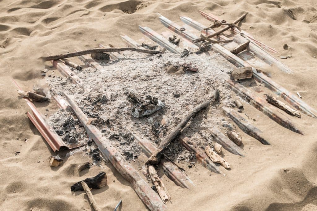 More clues emerged—weathered cloth hanging from branches, a broken pot buried in sand, and an extinguished fire pit. These weren’t ancient remains but signs of habitation. “Someone lived here,” Marc whispered, awe in his voice.