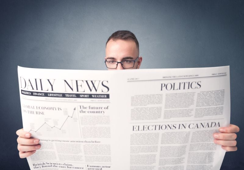 He pulled out an old newspaper and pretended to read it to sell it a little more. Now no one would suspect him of anything, or so he hoped.