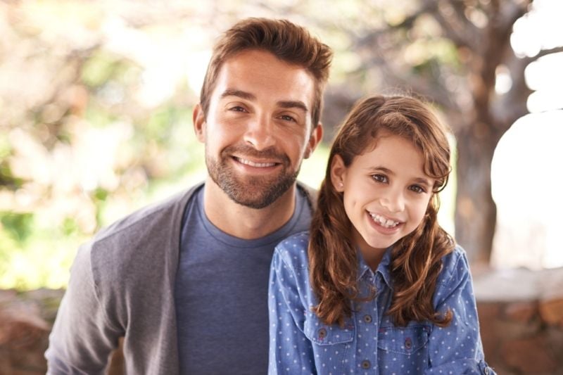 After a while, he saw the girl and her father leave the house again, but this time, they sat on the curb in front of the house.